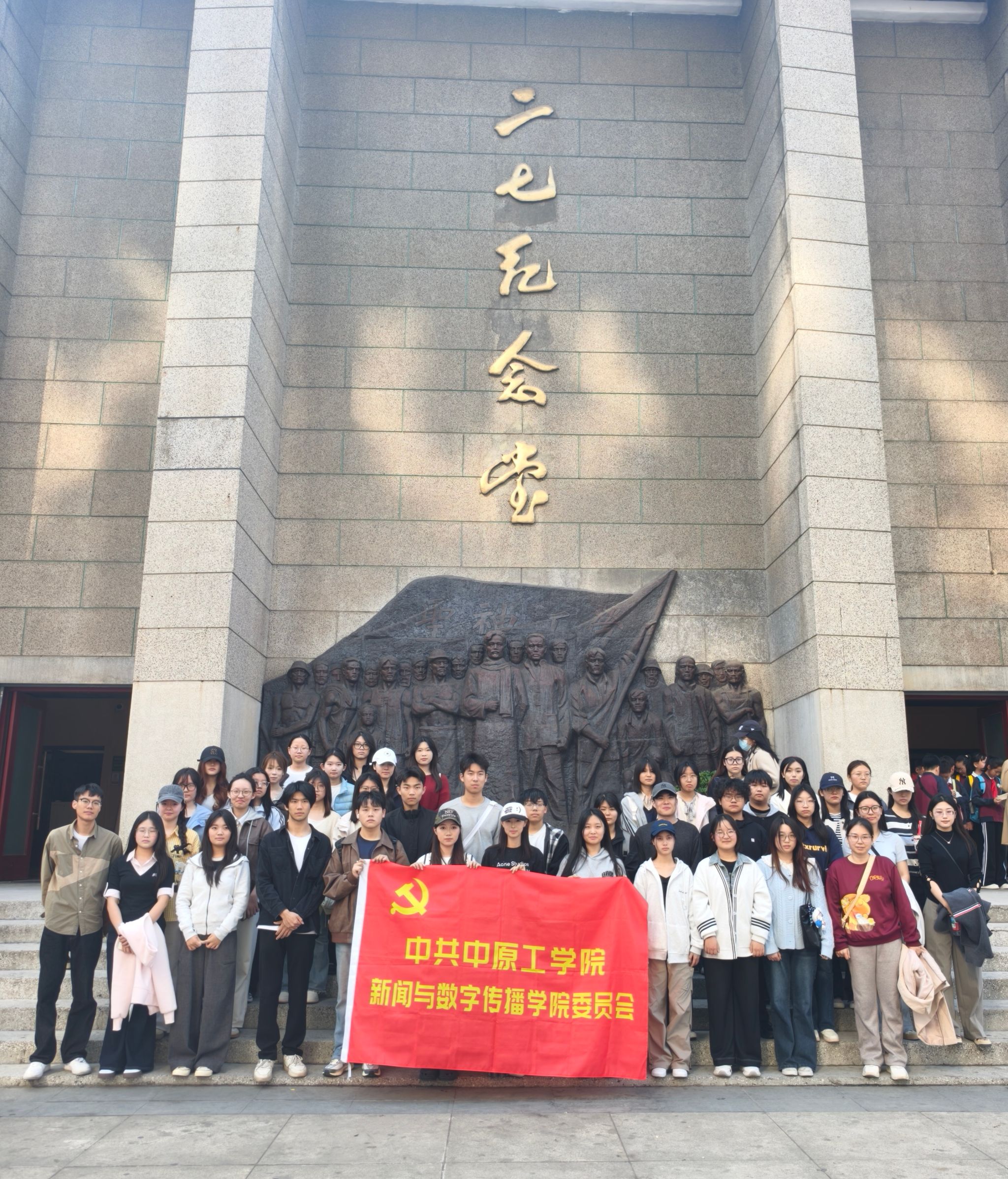在郑州二七纪念馆和二七纪念堂,通过参观陈列的珍贵历史图片、文物,观看多媒体展陈,同学们深入了解了京汉铁路工人运动的峥嵘岁月,从工人领袖不畏强权、坚守信仰的斗争事迹,到“二七惨案”中革命先烈宁死不屈的壮烈篇章,每一件文物都承载着厚重的红色记忆,每一段故事都彰显着中国工人阶级的英勇无畏与革命气节。同学们驻足凝视,深刻感悟革命先辈为民族解放、为人民自由抛头颅、洒热血的崇高精神,接受了一场深刻的红色精神洗礼。